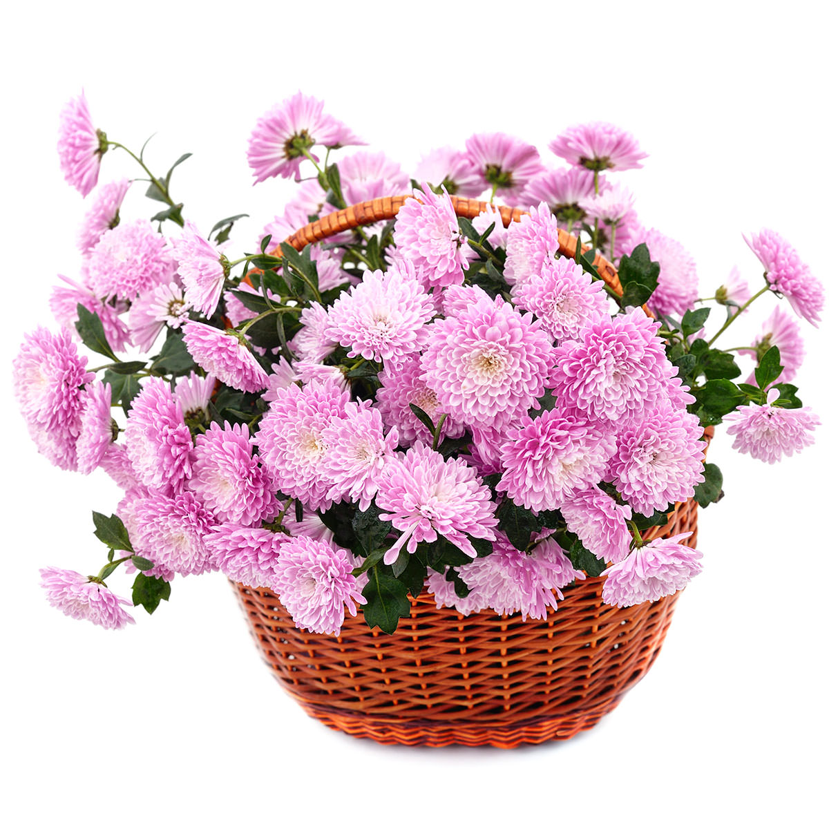 Хризантема сиреневая. Упаковка (Корзина, оазис, ящик).