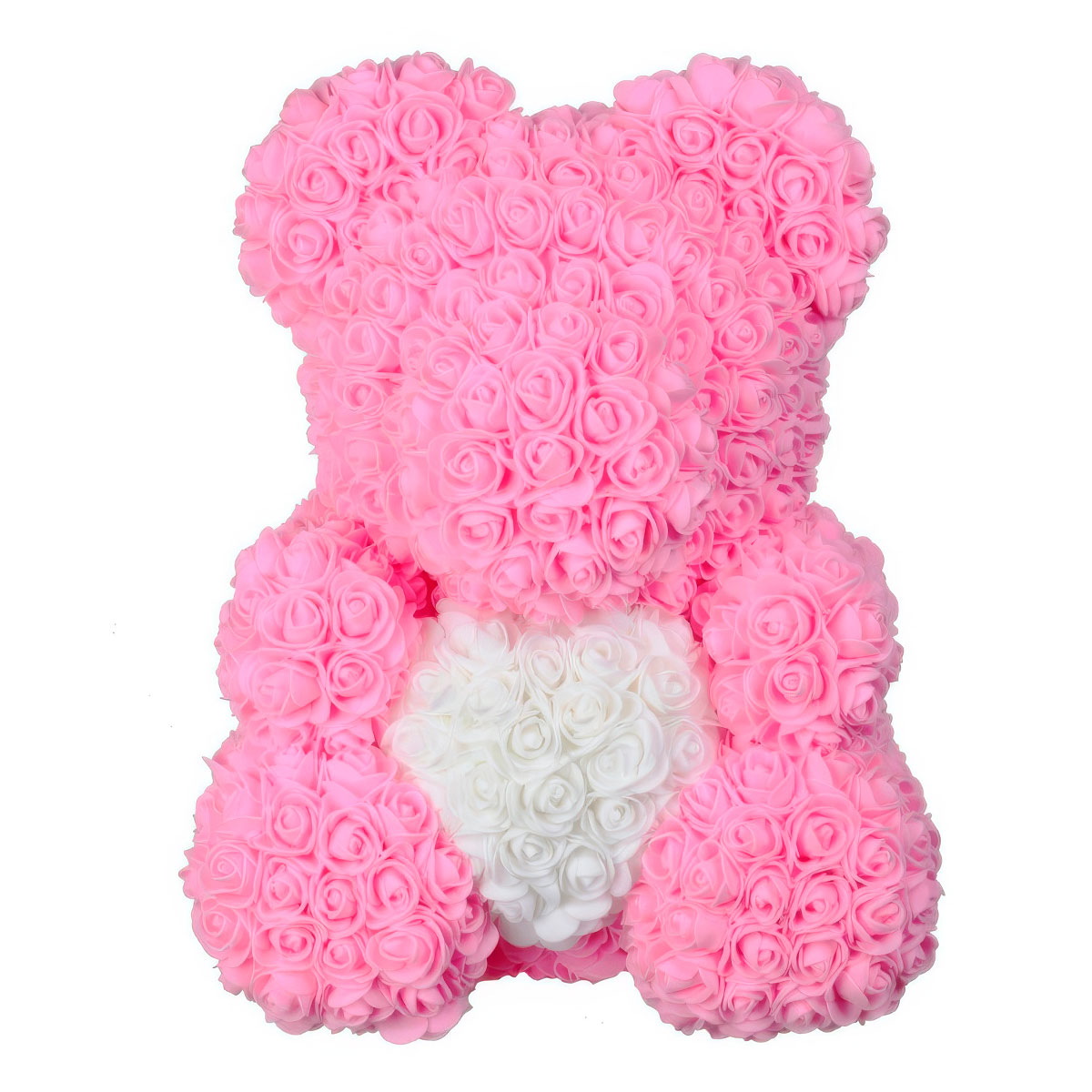 Мишка из роз розовый с белым сердцем (40 см) с доставкой по г Агрыз: вы можете купить подарок в интернет магазине «Флормания» по цене за 3990 руб.