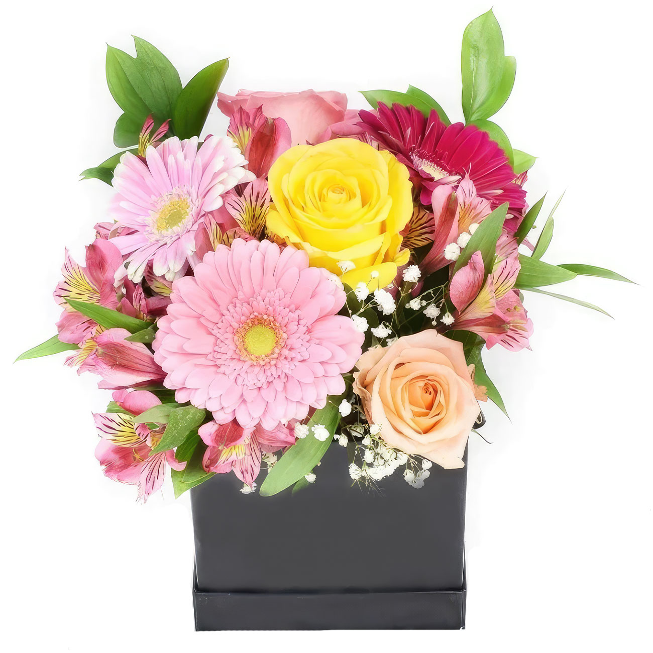 | Состав | Альстромерии, Герберы, Гипсофила, Розы |