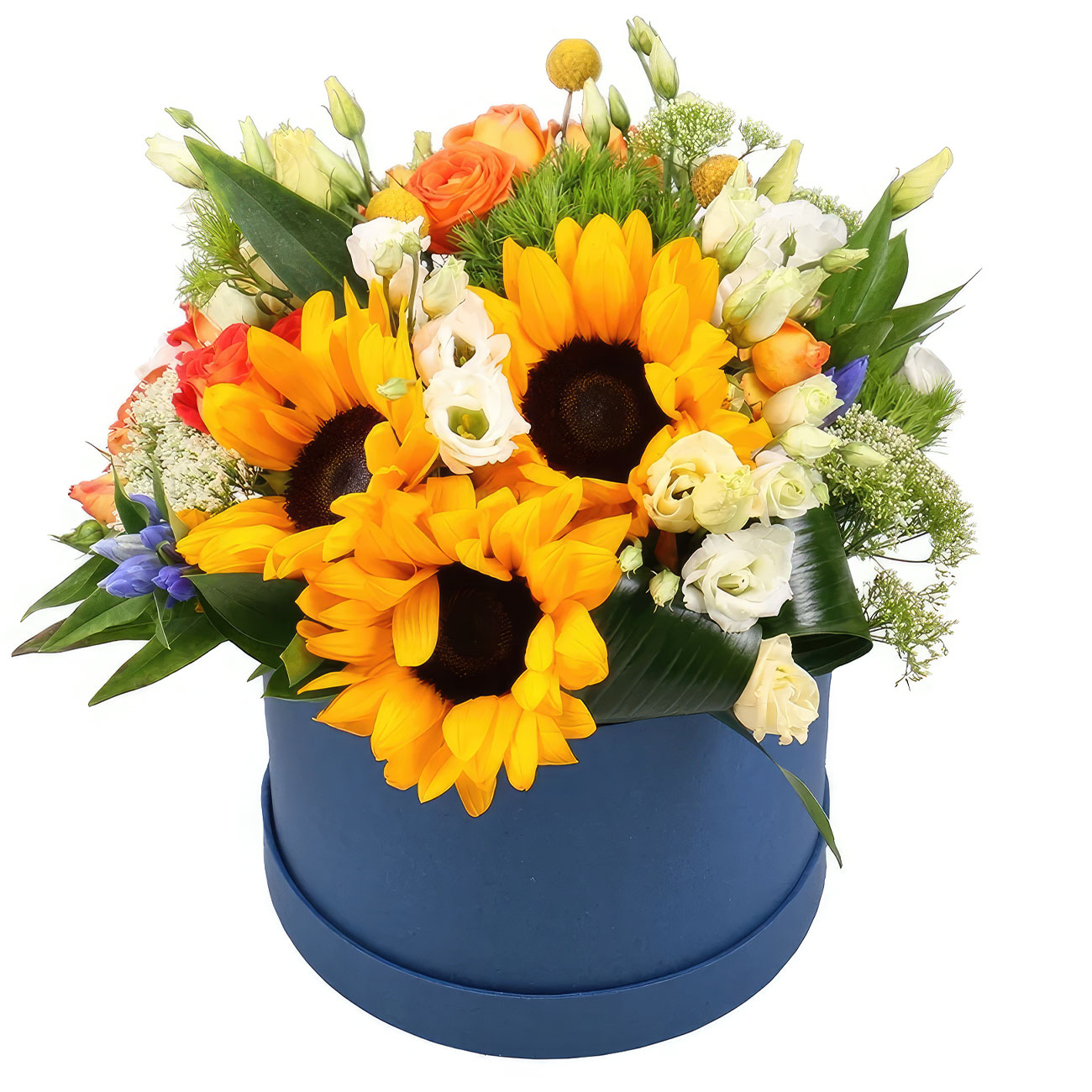Цветы в коробке «Подсолнечное настроение» с доставкой по г Агрыз: вы можете заказать букет в интернет-магазине цветов «Флормания» по цене от 3190 руб.