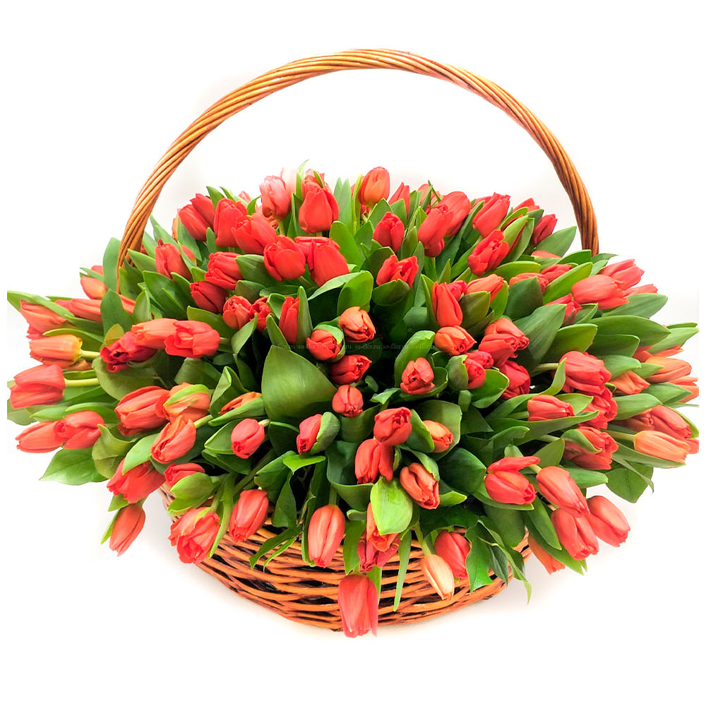 Цветы в корзинке «Красные тюльпаны» с доставкой по г Агрыз: вы можете купить букет в цветочном салоне «Флормания» по цене от 3490 руб.