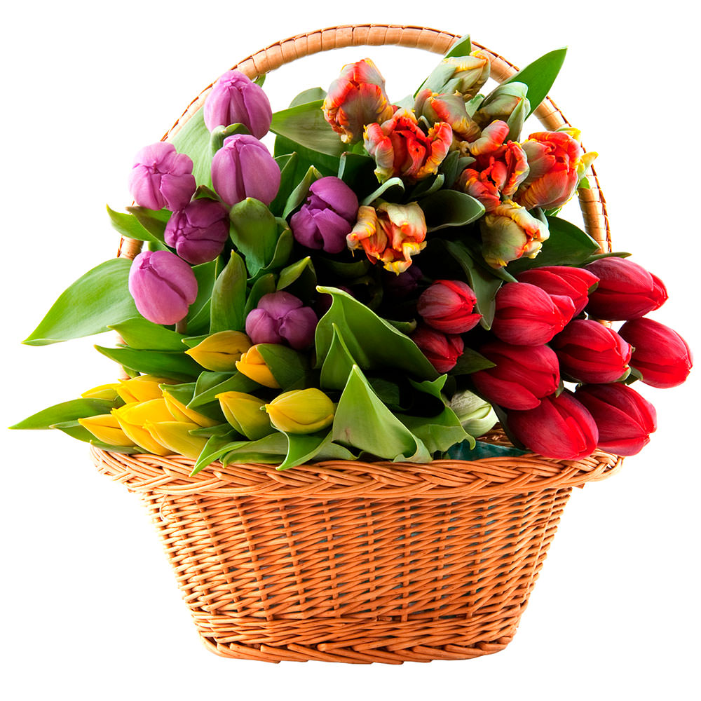 Цветы в корзинке «Микс тюльпанов» с доставкой по г Агрыз: вы можете купить букет в цветочном салоне «Флормания» по цене от 3490 руб.