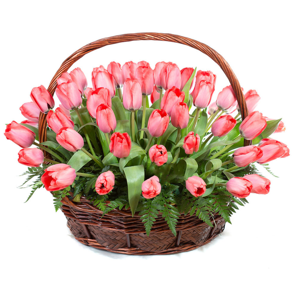 Цветы в корзинке «Розовые тюльпаны» с доставкой по г Агрыз: вы можете купить букет в цветочном салоне «Флормания» по цене от 3490 руб.
