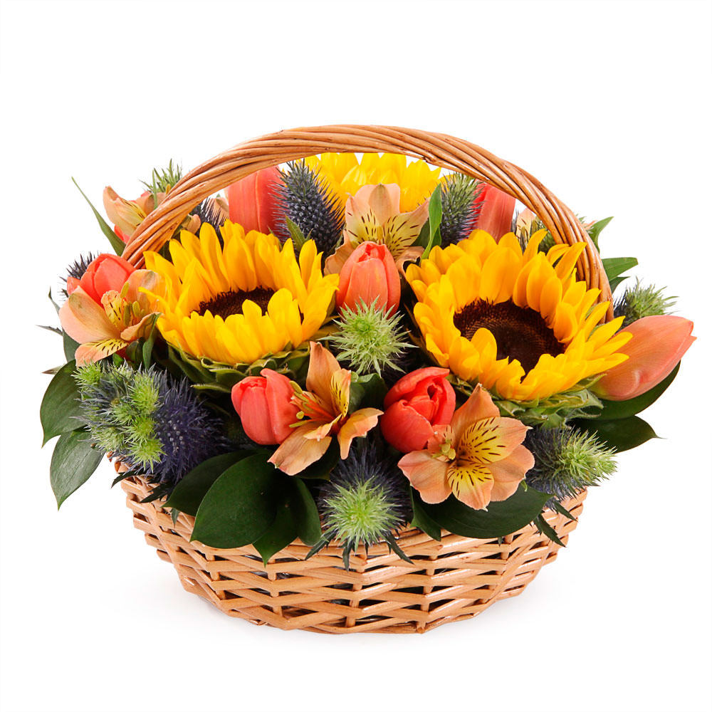 Цветы в корзинке «Солнечный день» с доставкой по г Агрыз: вы можете заказать букет в гипермаркете цветов «Флормания» по цене от 3490 руб.